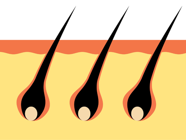 Haare wachsen oft dünner nach und die Wachstumsphase verkürzt sich. Das Haar kann sich insgesamt feiner anfühlen.